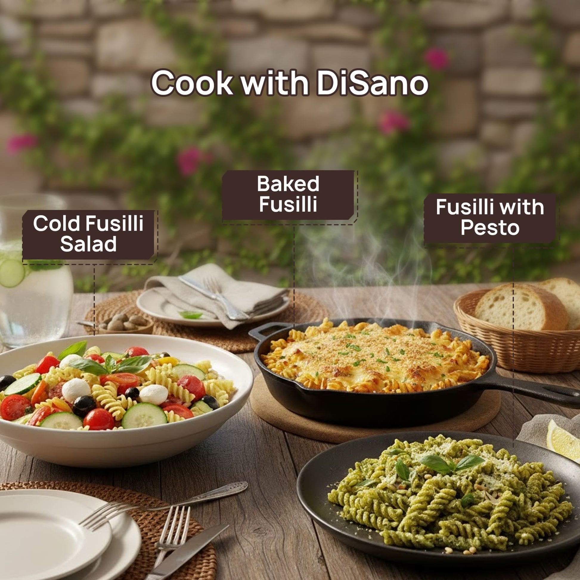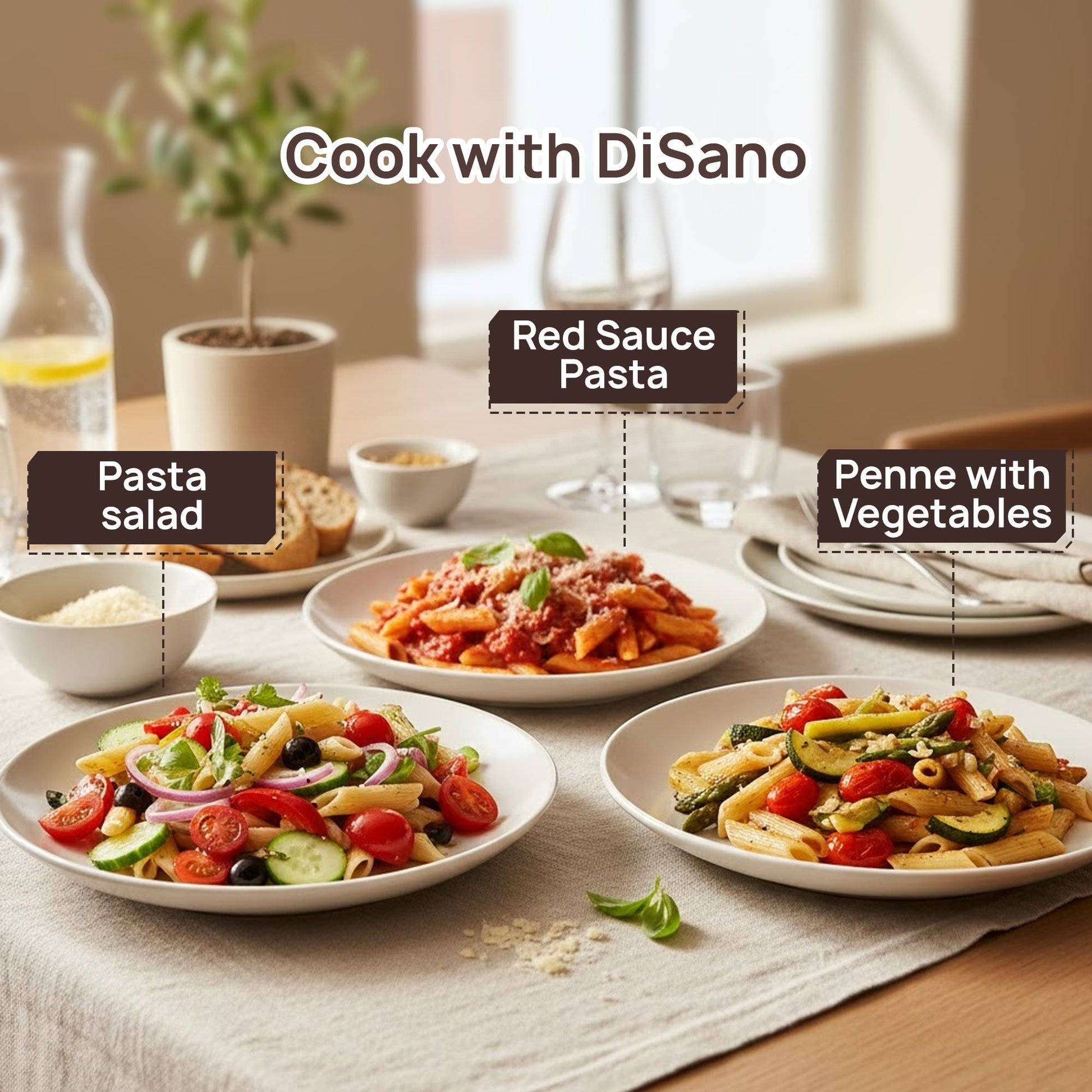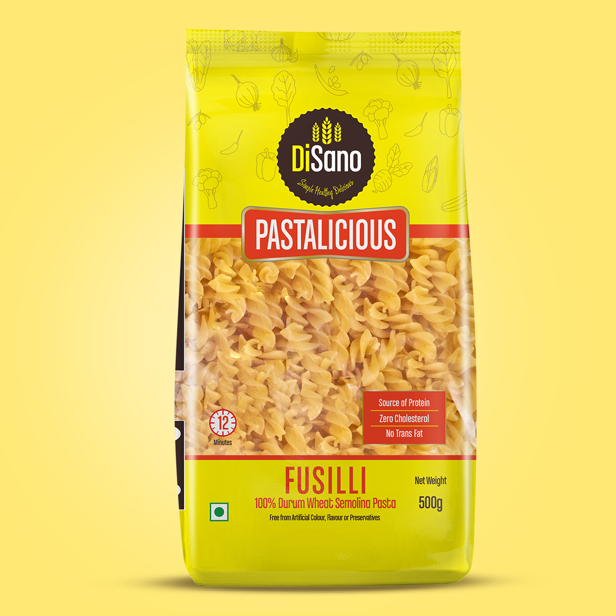 Crafted form the finest durum semolina, this no maida pasta transforms into mouth-watering and nutrition meals which take just 12 minutes to prepare. With a low glycemic index low cholesterol and high levels of fibre, DiSano pasta is the perfect choice.