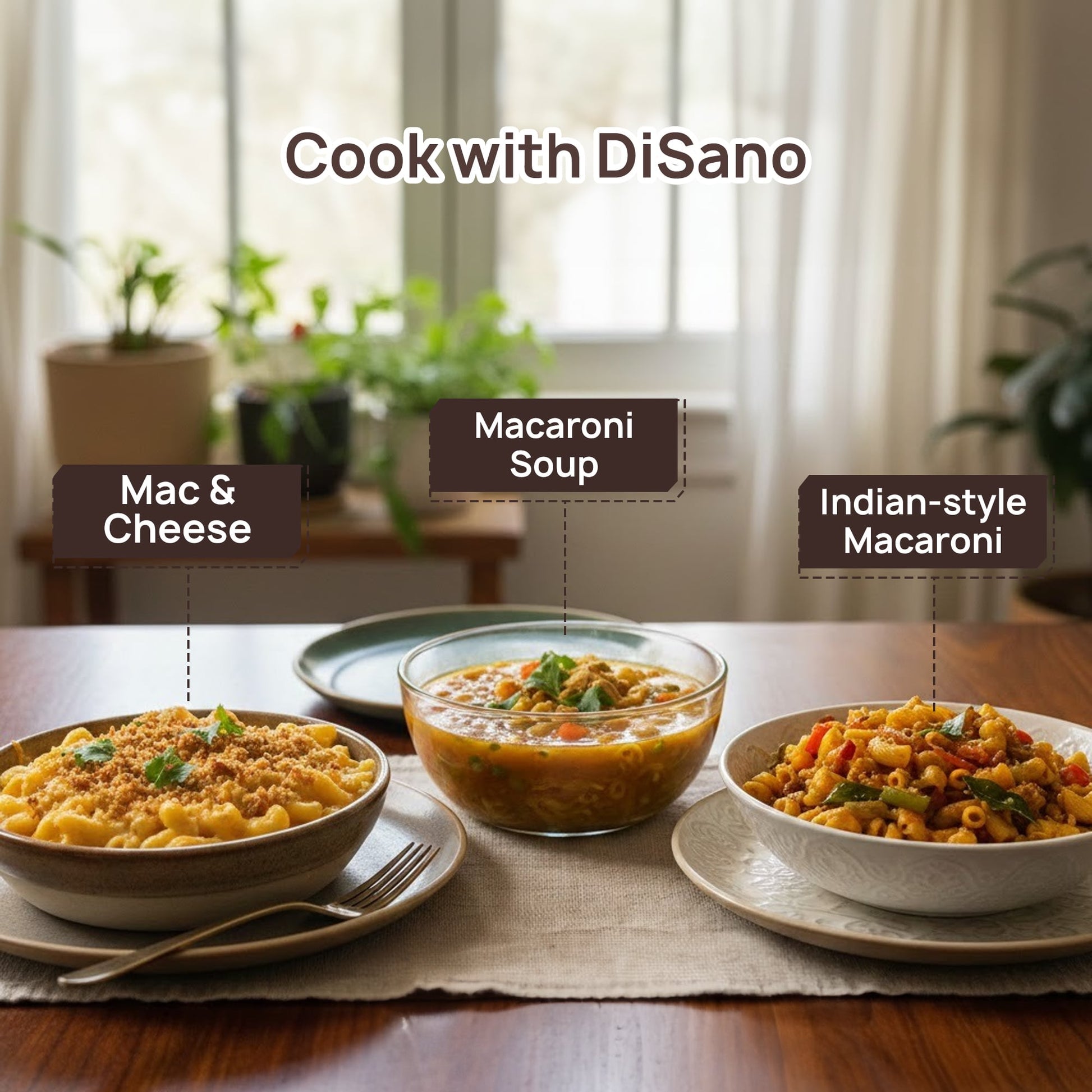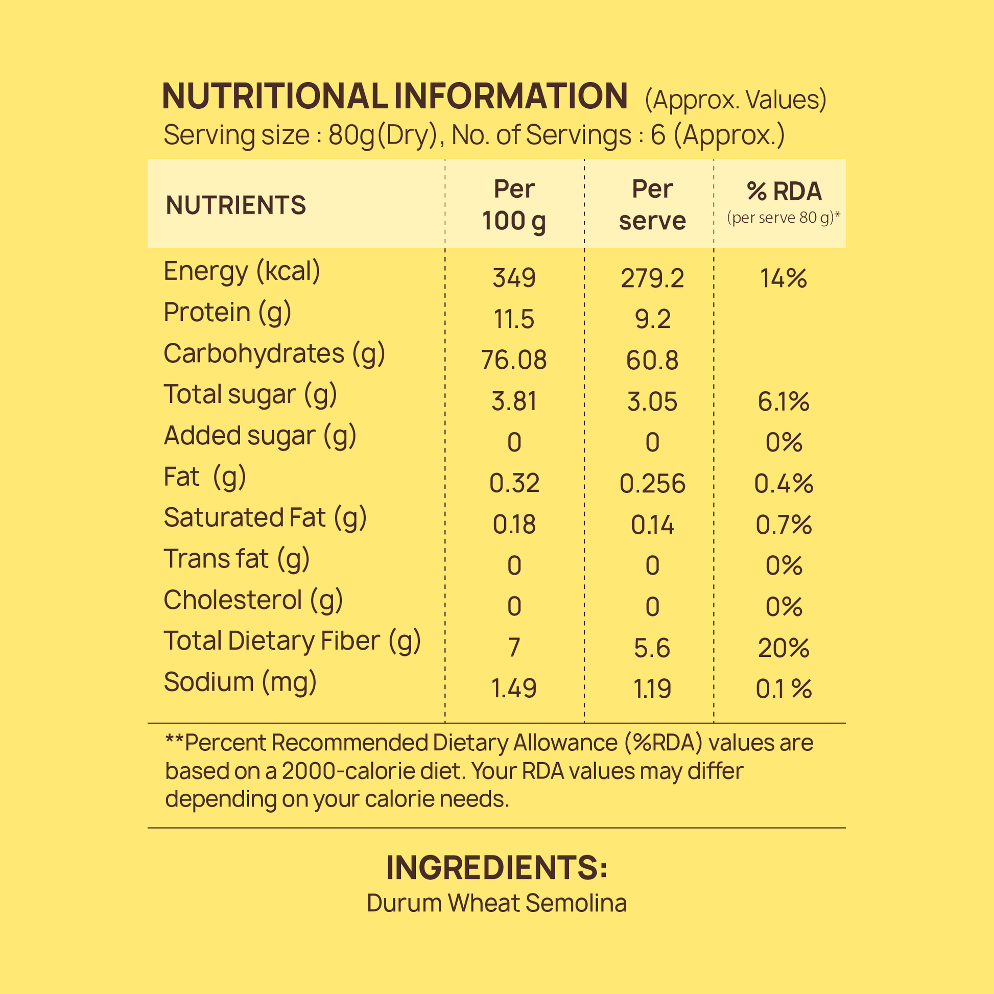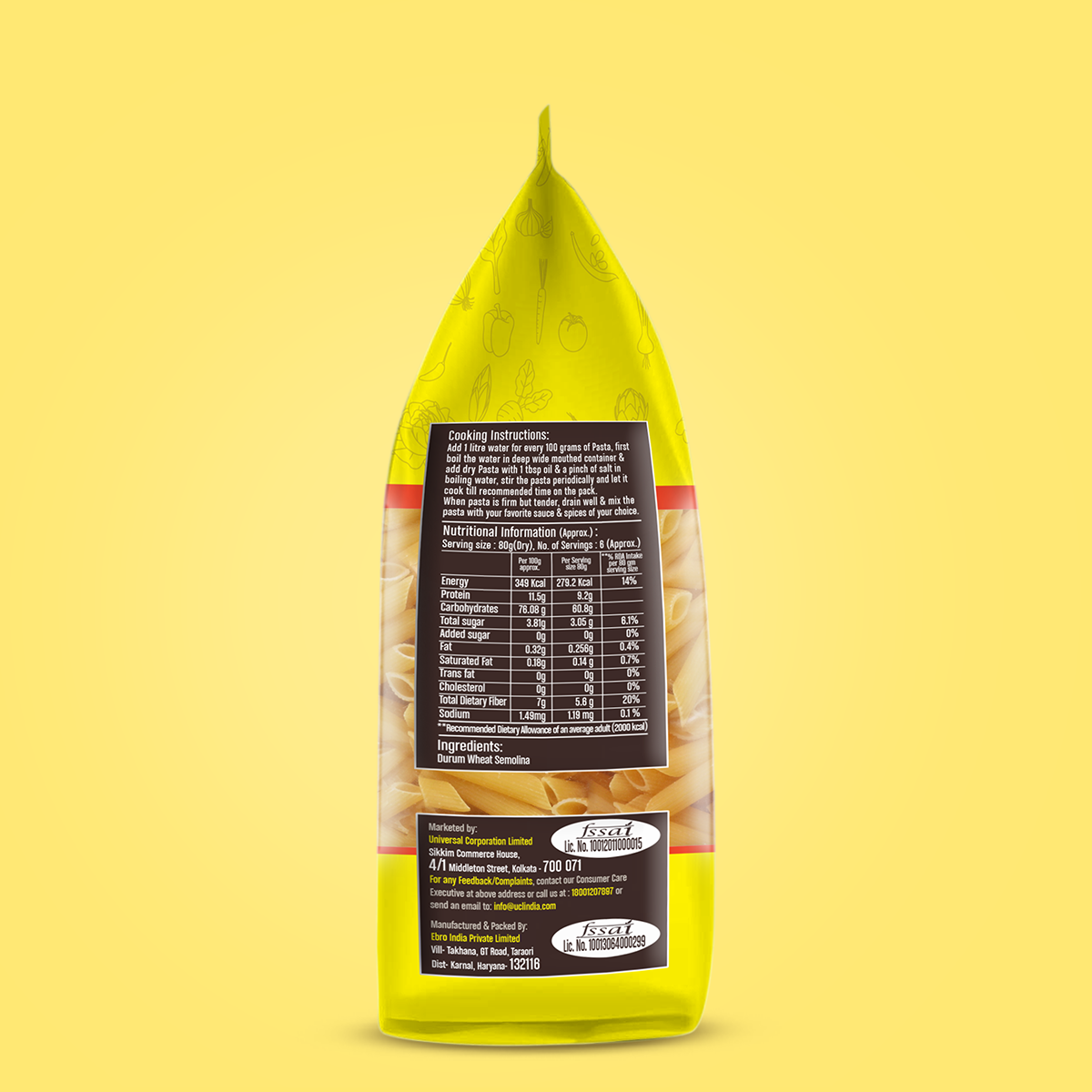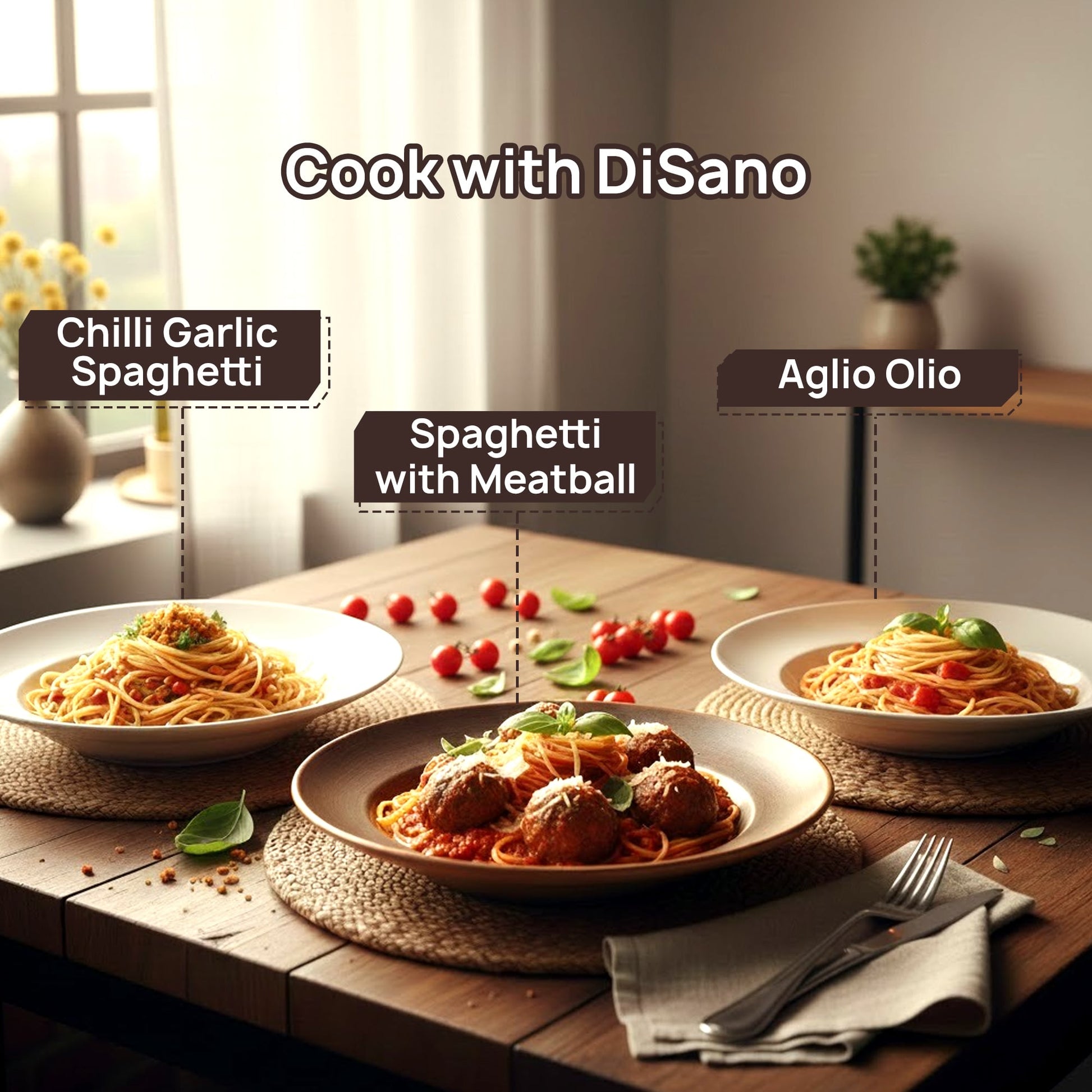 Crafted form the finest durum semolina, this no maida pasta transforms into mouth-watering and nutrition meals which take just 12 minutes to prepare. With a low glycemic index low cholesterol and high levels of fibre, DiSano pasta is the perfect choice.