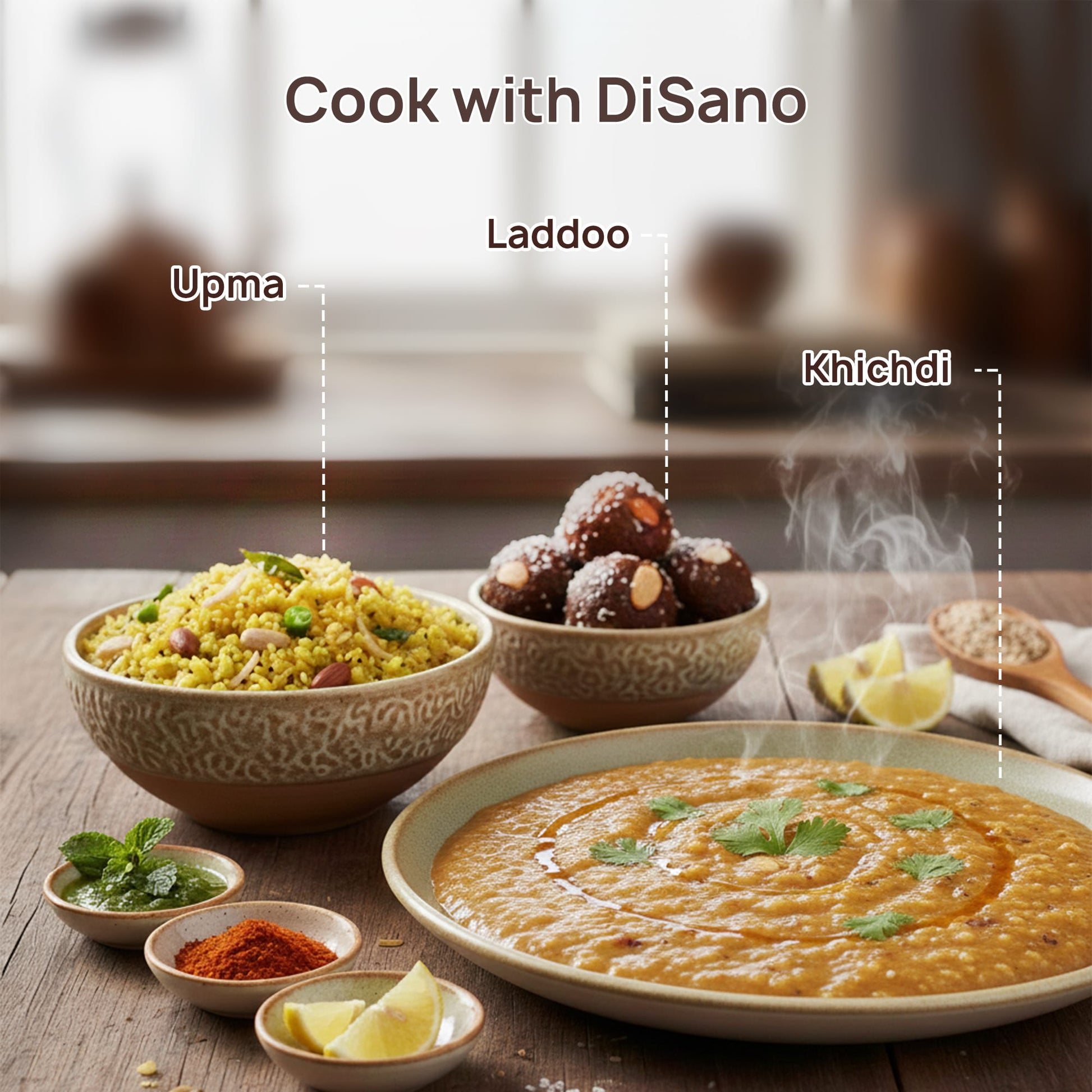 A versatile gluten free product, can be used for making healthy and tasty dishes - dosas, idlis, upmas, porridges and much more. DiSano oats is made from 100 % wholegrain oats, which is a natural source of protein and dietary fibres.